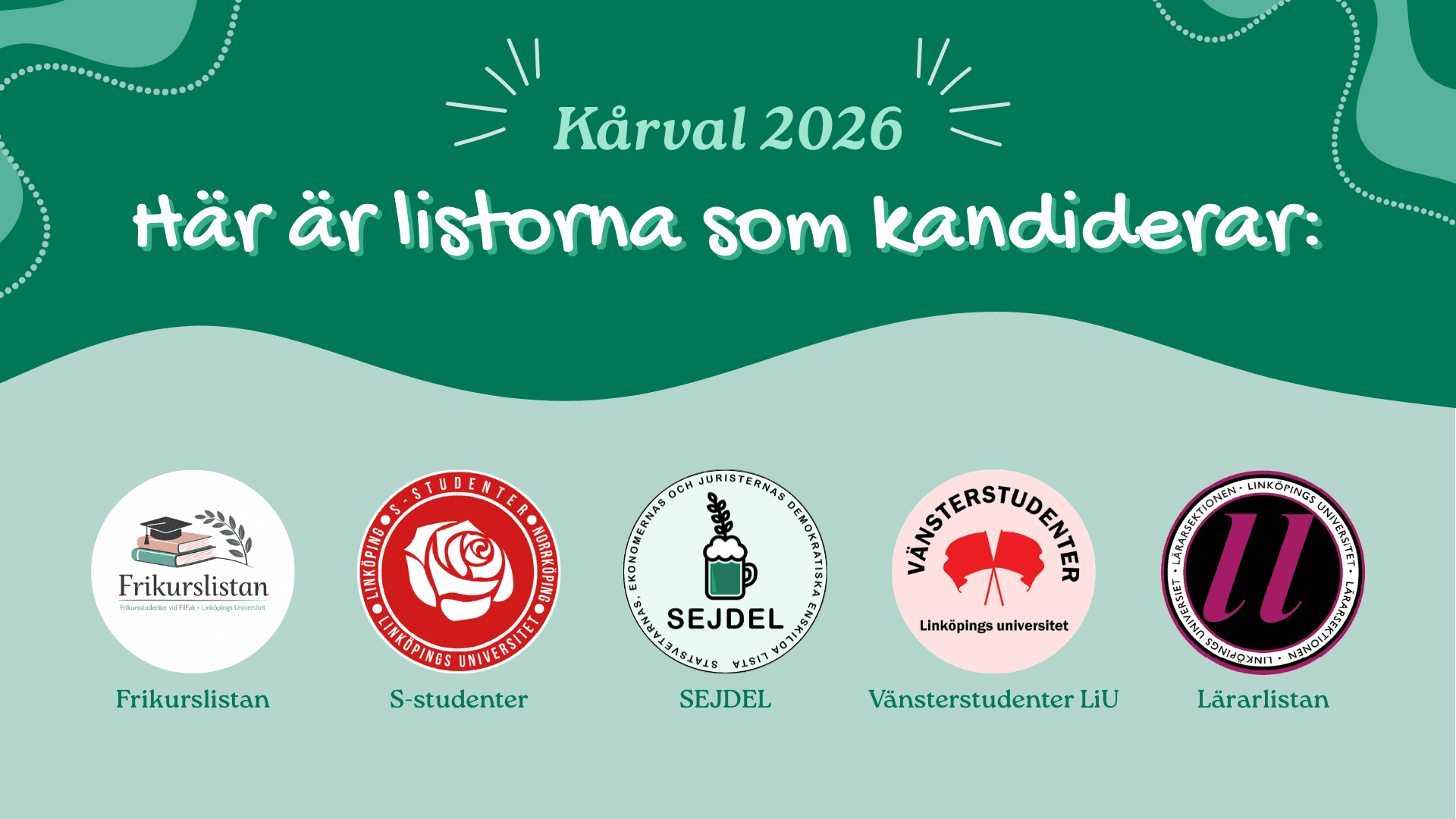Håll utkik på vår hemsida och våra sociala medier inför och under kårvalet för mer information. Valresultatet presenteras senast den 3 maj.